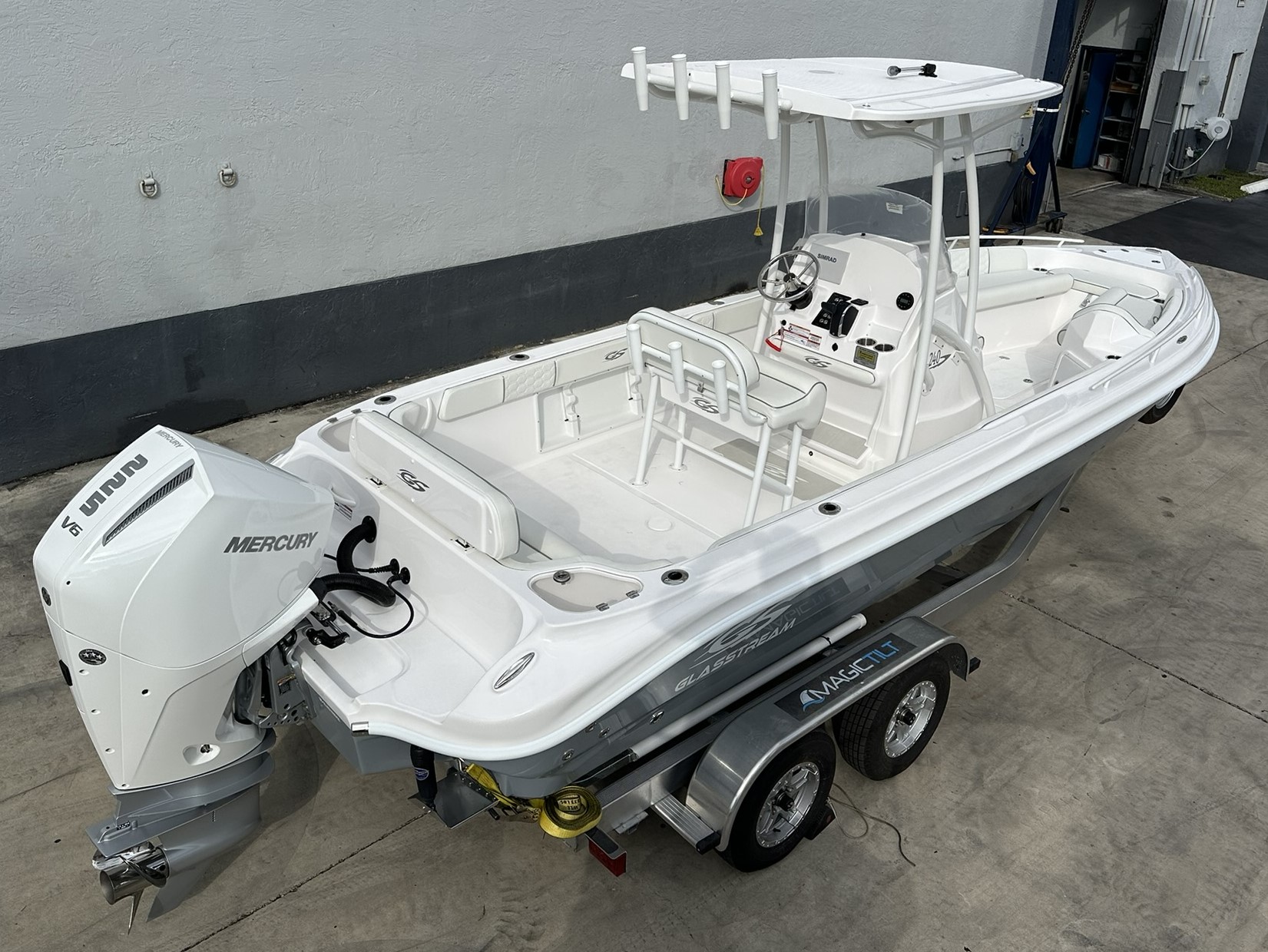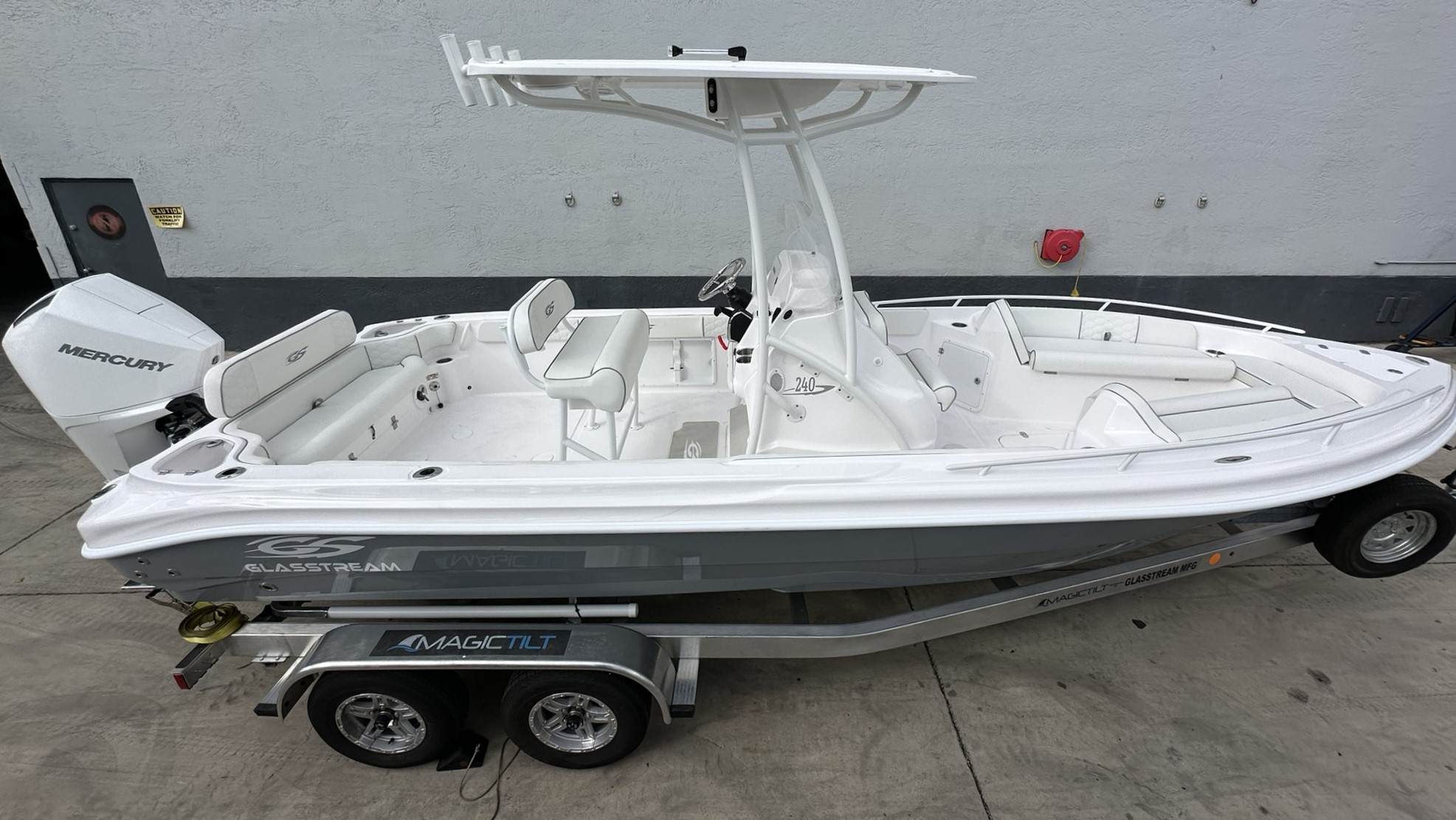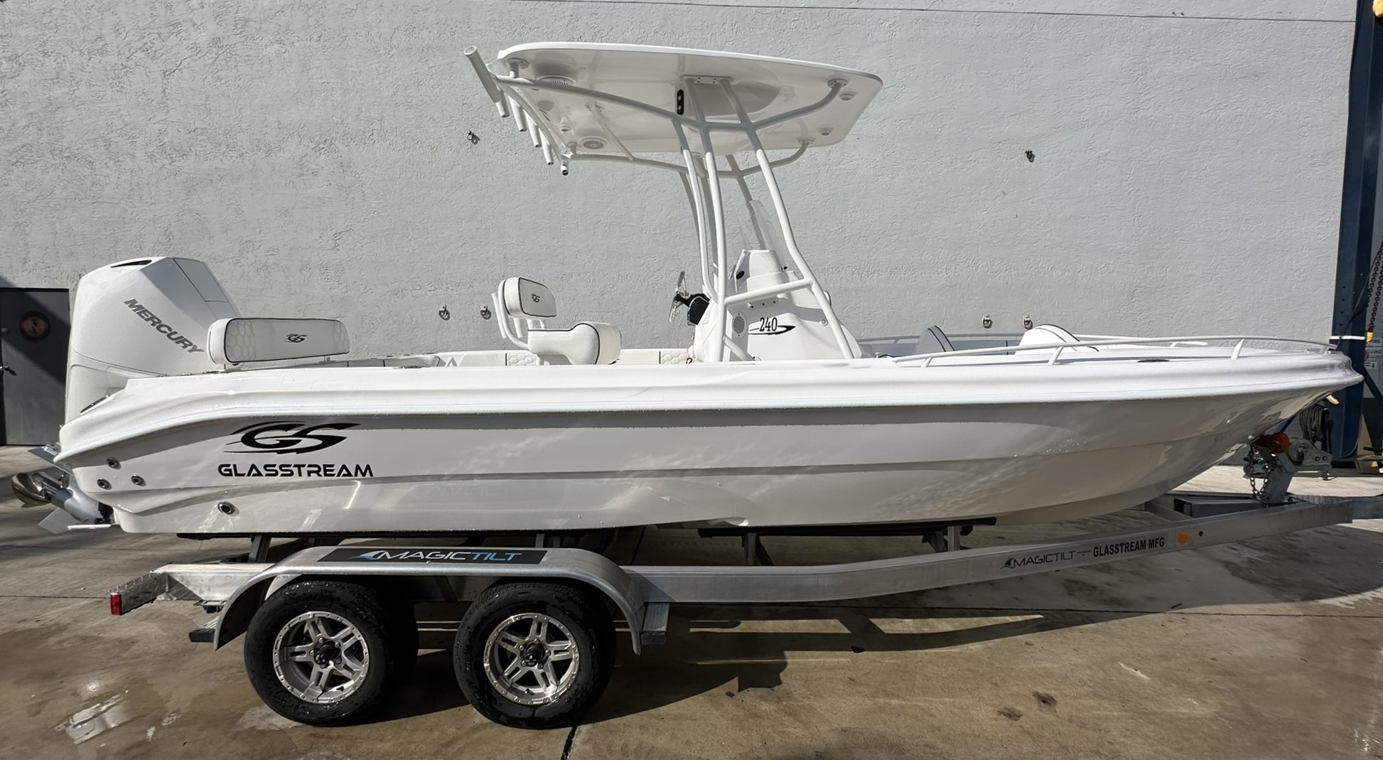 The 240 CCX defines versatility and economy all in one . A full-sized walk-in head, sun lounges forward with underneath storage accompanied with a full-featured option list, take this rig from a pure fisherman to a fun, family boat in no time. No matter if your fishing, diving, wake boarding, skiing or just cruising, the new 240 CCX does it all with Glasstream Powerboats’ style and performance.